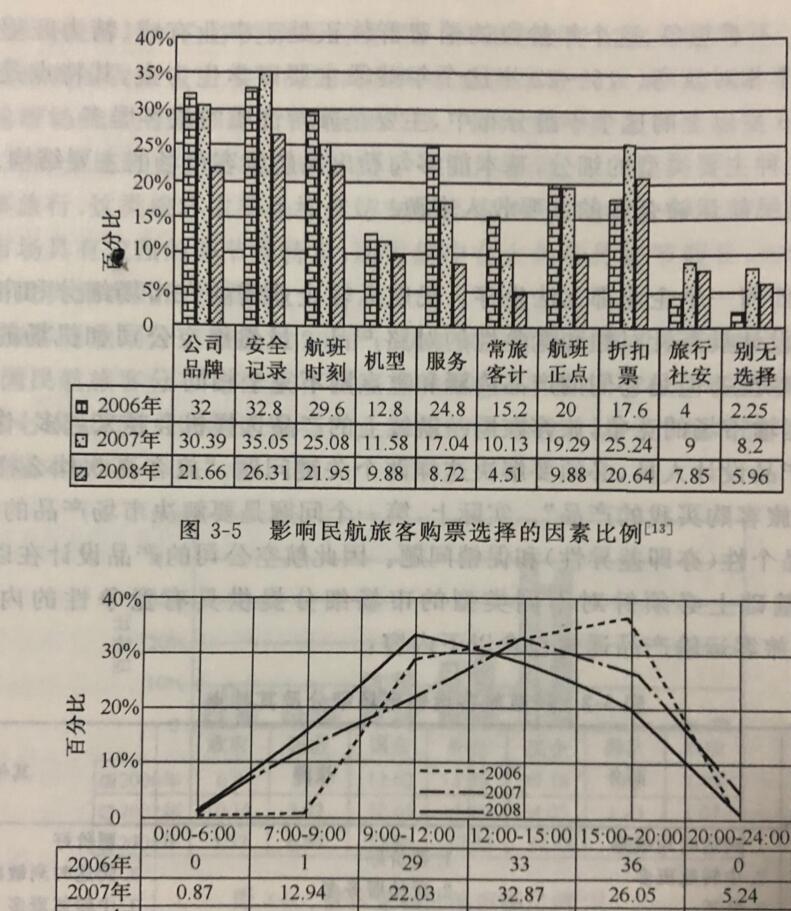 民航旅客需求很多,但是中10個影響民航旅客購票選擇的主要因素可以看 出,是航空貨代公司長期努力在市 場中建立的企業信譽與形象,而第三者則是航空貨代公司在航線市場中的競爭能力。 航班時刻是短途旅客(通常是指1000千米航程以內)選擇航空貨代公司的重要影響因素 之一,大多數短程旅客偏愛9:00~20:00之間的航班。