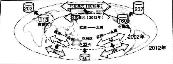 亞洲圈的主力軍是海外物流企業。中國物流制勝的關鍵 是提升服務品質。行業規模 受到以發達國家為中心縮減生產成本的影響,生產基地 開始正式轉移。在此背景下,據統計:國際物流從2002年的 395億美元增加到2012年的738億美元。其中,在成長尤為 顯著的亞洲區域,物流市場從2002年的22億美元到2012年 增至58億美元,足足擴大近3倍。