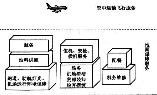 民航運輸生產是一個復雜的服務過程,它不僅涉及的領域多,而且隸屬管理關系復雜 和多樣化。根據航空運輸過程涉及內容,民航運輸可以分為兩大部分,一部分是空中運輸 飛行服務,另一部分是地面保障服務。根據每一部分的服務內容性質和現行民 航管理體制與市場化運營管理模式,國際快遞公司、機場和空管是兩大部分生產的組織者和管 理者,也是核心服務的提供者。隨著機場運行和機場地面保障服務工作的逐步專業化,第三方服務供應商提供機場的大部分地面保障服務。